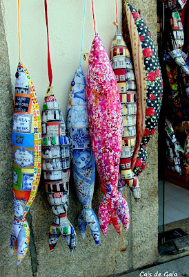 Assim que descemos do autocarro, passando junto às lojinhas de artesanato deparei-me com este "logotipo" e as sardinhas penduradas para venda.