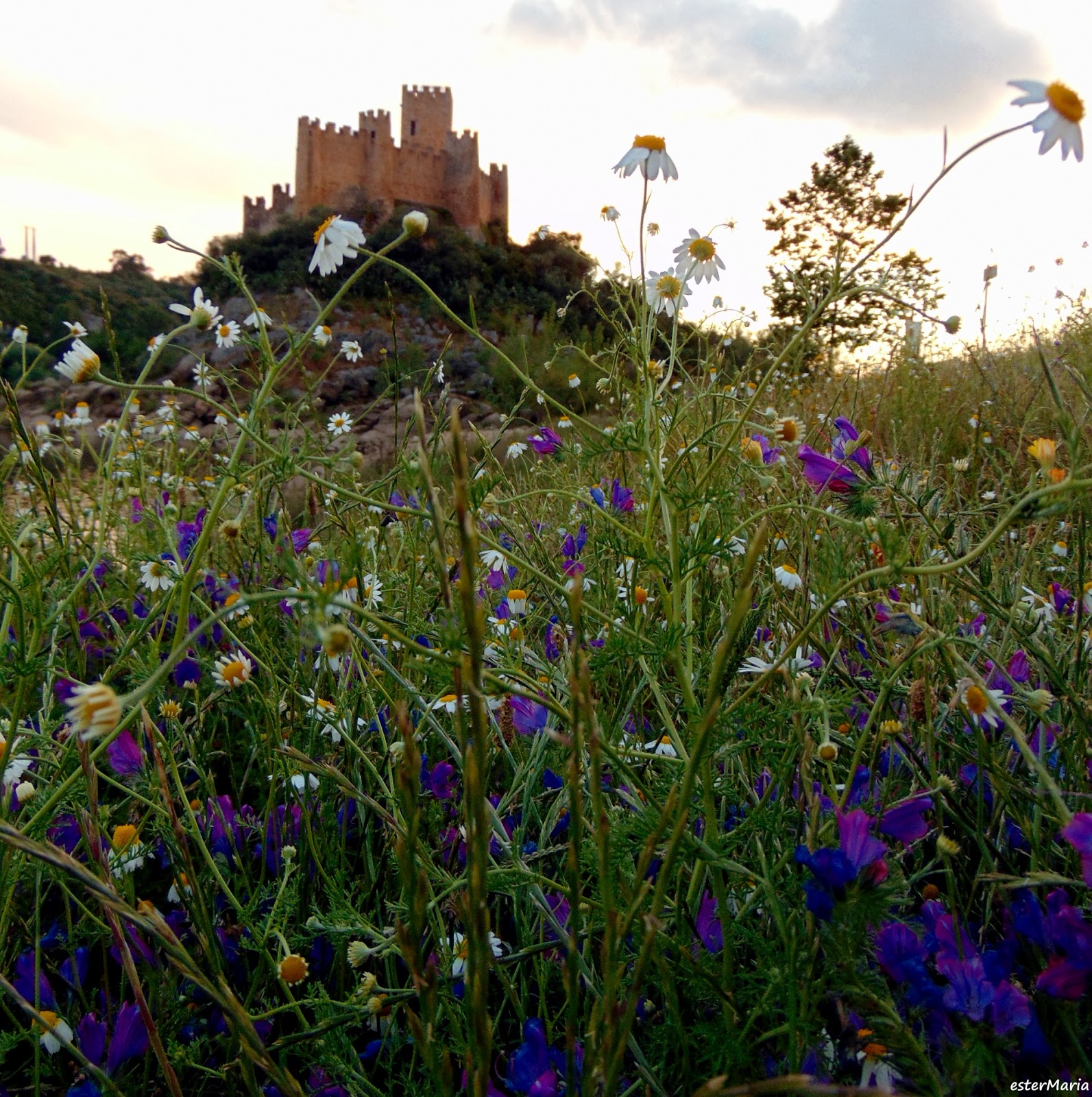 e captei duas imagens das flores e o Castelo ao fundo.