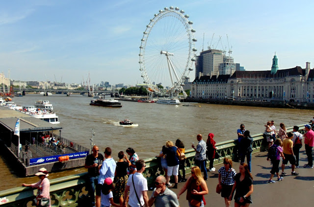 ali junto às margens do Tamisa e fomos até à "London Eye"